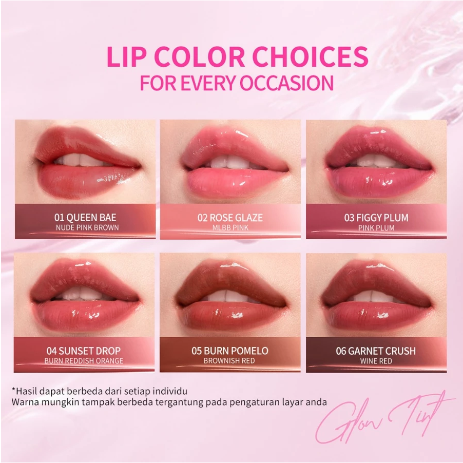 Glow tint yang diformulasikan dengan 8 moisturizing agents yang bekerja sinergis untuk membantu melembapkan bibir dengan hasil stain ringan bercahaya selama 12 jam untuk tampilan bibir sehat dan berkilau.