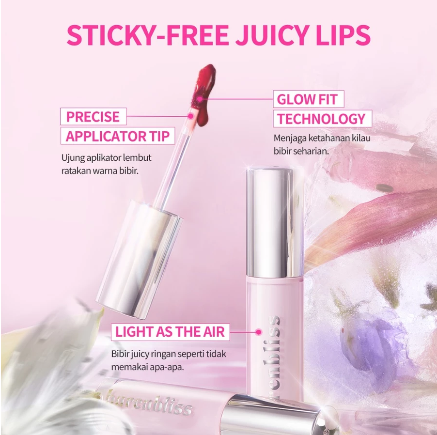 Dengan teknologi film-forming untuk kilau bibir yang bertahan sepanjang hari