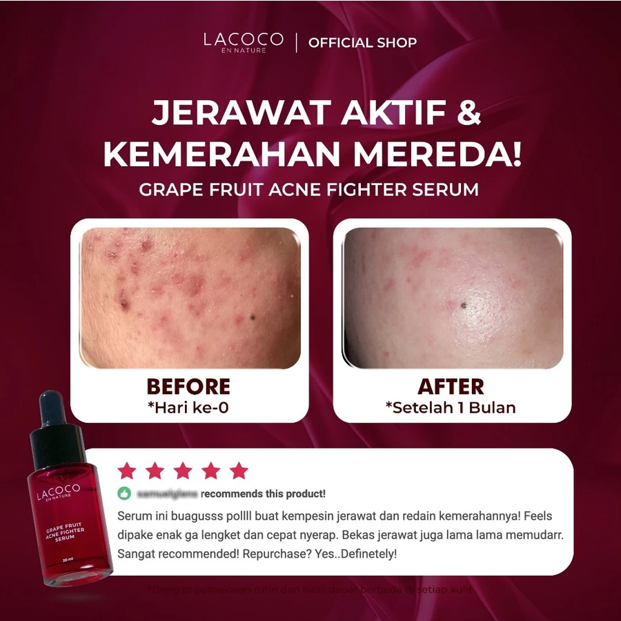 Grape Fruit Acne Fighter Serum merupakan serum yang berfungsi untuk merawat jerawat. Dengan kandungan utama berupa kombinasi antara buah dan bahan aktif, Grape Fruit Acne Fighter Serum dapat berfungsi secara maksimal untuk merawat kulit berjerawat.