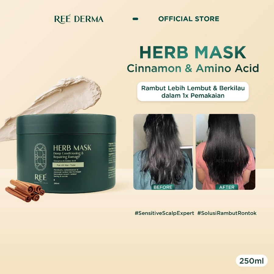 Reé Derma Wellness – Herb Mask Cinnamon & Amino Acid – Deep Conditioning & Repairing Damage