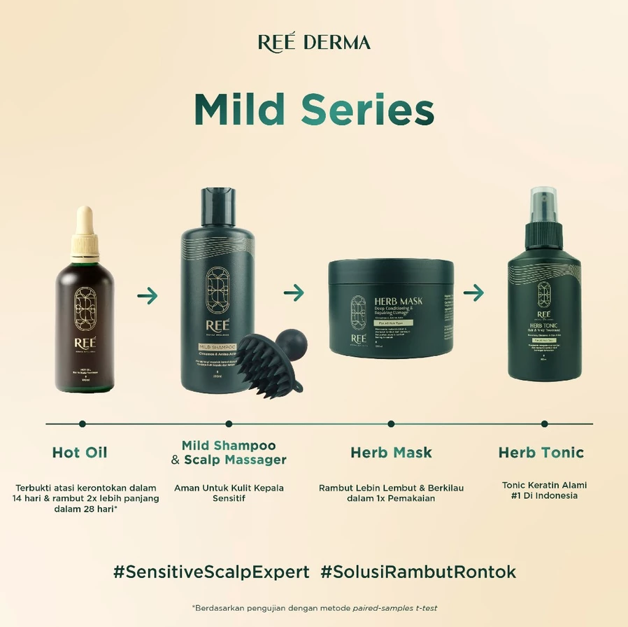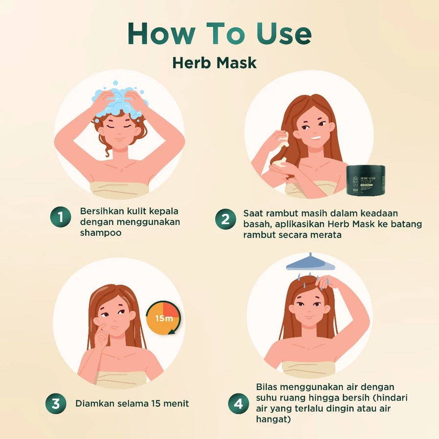 Step 2 : Ambil Ree Derma Wellness Cinnamon & Amino acid Hair Mask Deep Conditioning & Repairing Damage Hair – Usapkan pada setiap helai rambut dari pangkal sampai ujung rambut