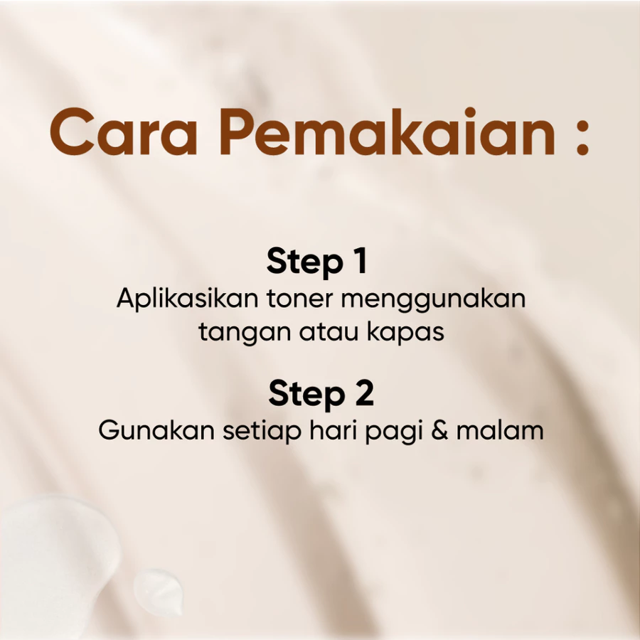How To Use : Setelah pencucian wajah, aplikasikan toner dengan menggunakan tangan atau kapas untuk mengeksfoliasi dan membersihkan sisa-sisa kotoran yang menempel. Dapat digunakan pagi dan malam dan dipadukan oleh produk skincare lainnya. Untuk hasil maksimal gunakan Lavender Facial Wash sebelum menggunakan toner, dan Brightening Essence sesudah penggunaan toner.